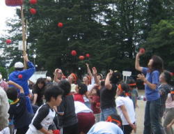 じいさん(G)ばあさん(B)まご(M)父母の三世代交流運動会が、 今年も青空の下、山岸小学校校庭で行われました。