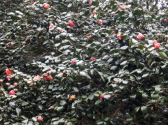 5月には丘陵地が1万数千本のヤブツバキで赤く染まるそうです。 |